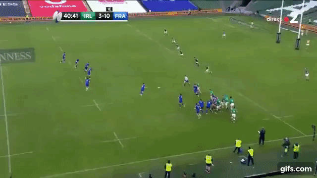 Ireland had an encouraging start to this game, with the greasy conditions stymying France’s handling. This, coupled with Fabien Galthié selecting the 5’9” Brice Dulin at 15 meant that aerial bombardment was the cornerstone of Ireland’s game plan, and they imposed themselves on France territorial in the first quarter by ruthlessly targeting the La Rochelle full-back under the high ball: