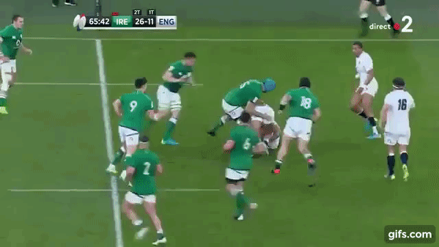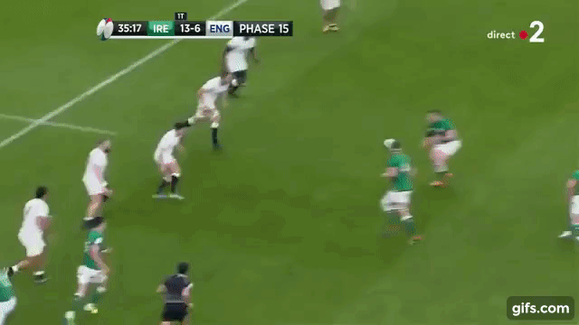 Yesterday was a huge leap in the right direction for Ireland in this regard, and there were a couple of important characteristics to their attacking play that were the difference between them struggling to generate forward momentum and putting together one of the most exciting team scores in recent memory. Chief among them was how Ireland freed up Johnny Sexton to stand in a wider position in attack by having forwards pass two-out and other members of the back line step in at first-receiver: