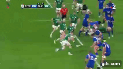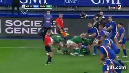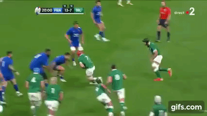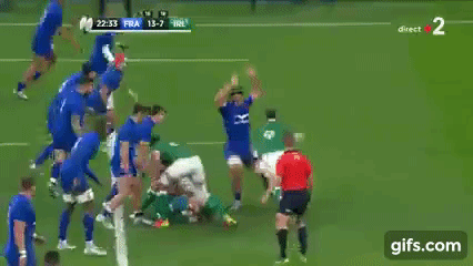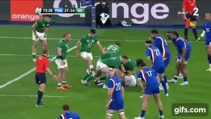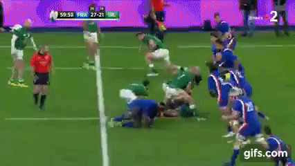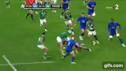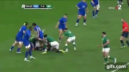 The knock-on effect that this had for Ireland was that their scrum-halves had to dig the ball out of a messy ruck, and were hurried into bad skill execution by the pressure that Ireland were under from the French pack: