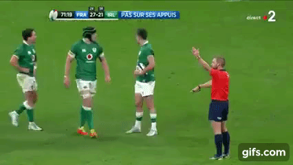 The aerial contests throughout the game had been even enough, whereas Ireland’s attack had troubled the French defence from the beginning the second half, so holding on to the ball in order to stress France would have been the better option. Playing 70-odd minutes in a bruising encounter is guaranteed to have caused their decision-making to deteriorate (and it’s easy to say these things in hindsight), but going through the phases would have given them a better chance of winning the game than 50/50 high balls.
