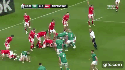 Under Mike Catt’s stewardship, Ireland have turned into past masters at attacking this space, using zig-zag patterns to attack the open side first before overloading the short side to good effect, and over time, their players have developed an excellent understanding of when to pass and when to carry in these situations, as well as outstanding skill execution in confined spaces: