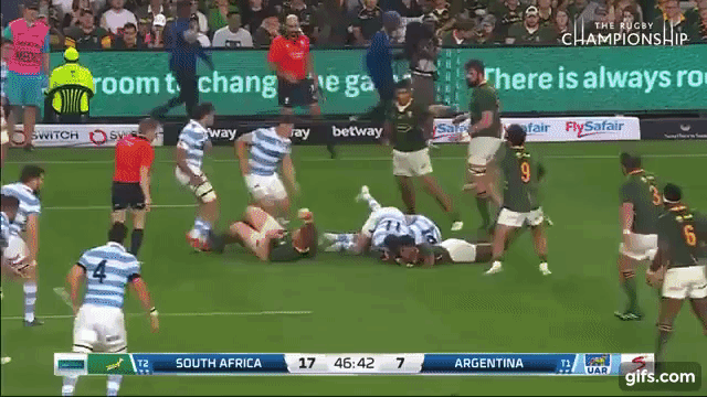 The Pumas also made brilliant use of Joe Schmidt’s outside-inside move, and in doing so highlighted how slow some of the Springbok forwards are to get up off the deck or to turn back infield if the opposition throw an inside pass: