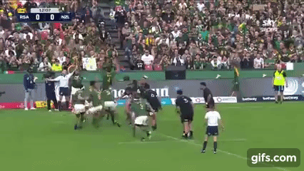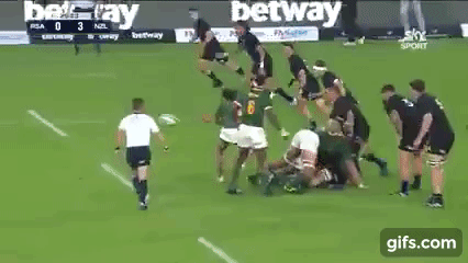 The All Blacks learned from the instance above, providing a good example at the very next lineout of how to nullify South Africa before they can build up a head of steam. In the below example, as soon as Lood de Jager comes to ground, the New Zealand pack first shove aggressively from outside to in to push the Springboks away from the zone they want to attack before coming back around the front to halt their momentum:
