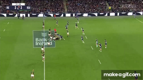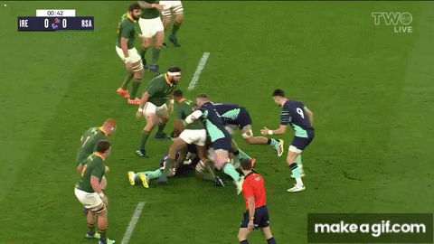 After conceding a cheap early penalty in this department, Ireland sharpened up their counter-shove immeasurably, and the South African pack got next to no change out of them from touch thereafter: