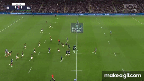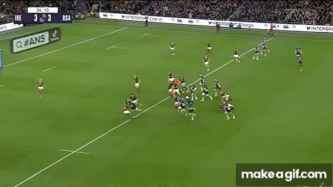 South Africa’s defence made it difficult for Ireland to get the ball to their wingers into the clear, with the speed of the blitzing from Jesse Kriel and Makazole Mapimpi causing the hosts no end of consternation with their wide movements: