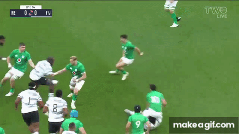 Ireland’s error count in this game in general was poor, and cheap penalties prevented them from having the long periods of possession that they usually enjoy. They did string some promising periods of multi-phase play together, only to let Fiji off the hook through a mix of under-resourced breakdowns, bad body positioning and ill-timed clear-outs, on top of being overzealous in this area in defence as well: