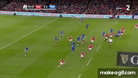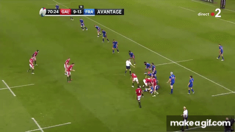 Out of all of the other Six Nations teams, Wales have come the closest to beating France over the course of the last year, and one of the main reasons they managed to do so was by using Les Bleus’ desire to win kicking duels as a weapon to hurt them. In the last few years, France have kicked heavily to pressurise sides into conceding territory and making mistakes, and Wales countered this by refusing to kick the ball out of play, instead kicking long but well infield, sometimes straight to the French backfield defenders: