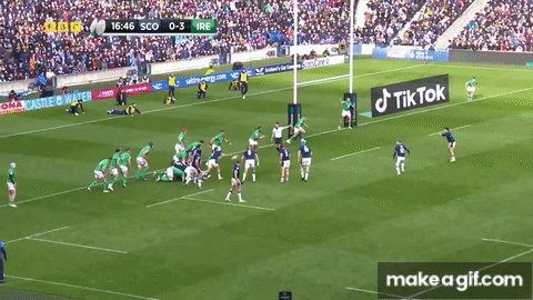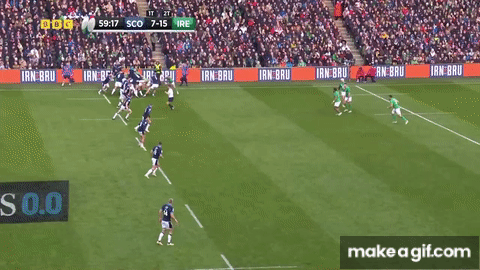 Once Scotland were let off the hook with the above, they began turning the screw on Ireland, and their vaunted back line caused the visitors serious problems in defence out wide, even with Johnny Sexton and Garry Ringrose back in the starting XV: